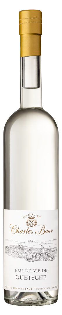Cette eau de vie est élaborée à partir d’une variété de prunes réputée en Alsace qui se nomme la Quetsche. La questche est une grosse prune particulièrement sucrée et aromatique dont la robe est violette et la chair jaune or.